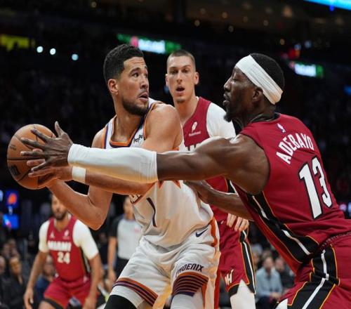 太阳客场挑战热火,太阳少了杰伦格林,热火上半场优势明显,半场战罢领先17分,第三节太阳强势反弹,单节赢了17分追平分差,第四节热火重新领先,最终热火以6分优势拿下比赛。阿德巴约15中11(三分6中4)得到29分9板4助,鲍威尔18中10(三分10中4)得到27分5板3助,希罗18中8得到23分2板3助攻,太阳方面狄龙24中11得到25分4板2断,阿伦19中9(三分14中6)得到25分4板2断,布克19中6得到24分9板9助。