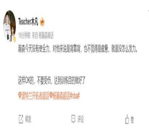 媒体人:感觉杨瀚森在G联赛没有太多可总结,比赛游刃有余得分上20全队最高,而且他还刚刚跟随开拓者从金州回到波特兰,我甚至觉得他都还没有100%发力。只要球队以他为核心就可以展示策应的优点,而且几个队友球商跟不上还连续吐饼。